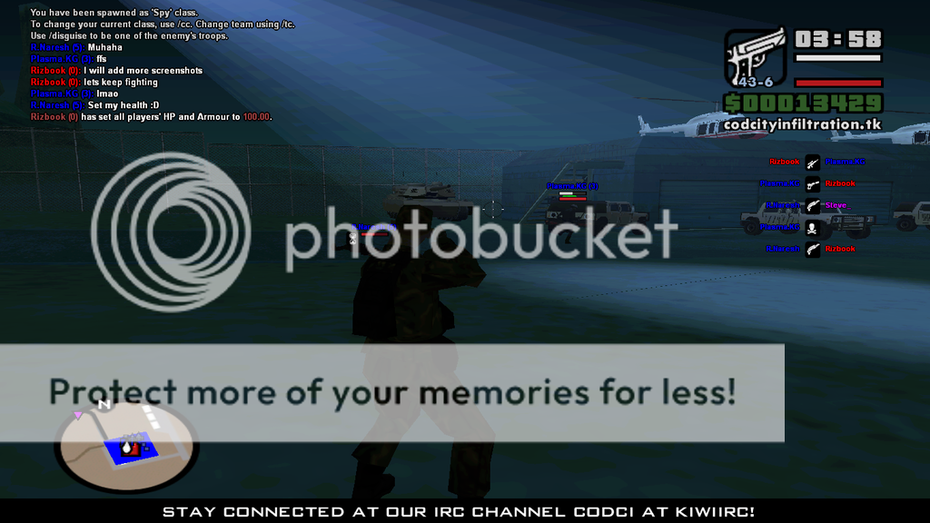 Call of Duty: City Infiltration is a TDM-server which has opened in the month of May, and also a server which utilizes a custom-mapped city which is located beneath the Verdant Meadows Airport, or simply the Desert Airport. This server was also founded by Rizbook and R.Naresh.